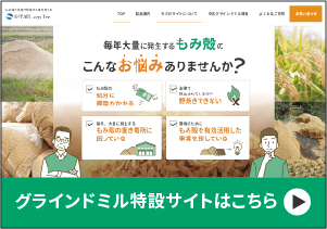 「グラインドミル特設サイト」ではグラインドミルのメリットや導入までの流れ、モミガライトの活用方法、ご活用いただける補助金、よくあるご質問等、グラインドミルについてわかりやすくご説明しております。下記URLよりご確認ください。